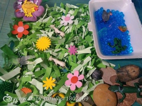 Все-таки, потому что ввязались с Тёмкой сразу в 2 конкурса, надо к годику готовится, у старшего выпускной! Но, почитав задания, поняла, что по 1 заданию на день, все успеем! В этих постах буду писать только то, что относится к заданиям по марафону, хотя многое мы делаем на дню и другого. Итак, с вечера собирала сенсорную коробочку «Весна». Практически все, что в ней, куплено в Фикс прайсе, причем некоторые вещи купила накануне, например травку (продаётся в отделе «Всё для сада»), цветочки, птички и гнёздышко. Набор насекомых у нас был, камушки, листики и деревья тоже.
