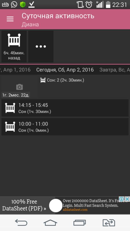 Дневной сон у нас 1,5-2(редко 2,5 часа)