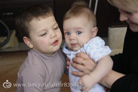 ну и немного о нем, из умелок: перевороты на живот, песни поет, ой заслушаться можно, играет в игрушки, грызет их, очень любит страшего братика, все время наблюдает за ним и хохочет, поднимает корпус, пытается сесть, и ползает по пластунски, и у нас вчера проклюнулся второй зубик, первый уже на половинку вылез!