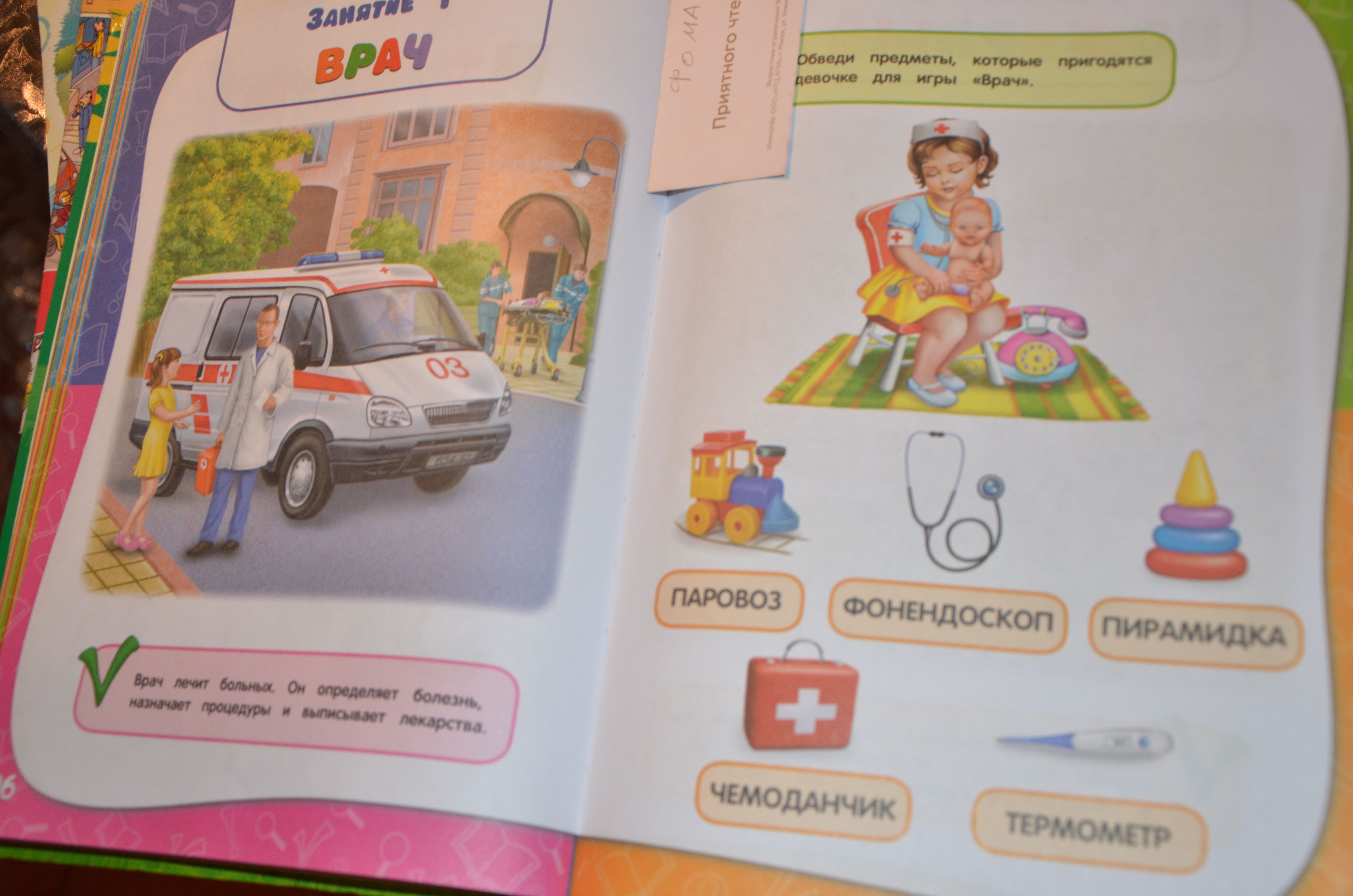 У серии Школа Семь гномов есть книга целая — какие бывают профессии, и там есть игра типа лото — предметы разные и карточки повара, полицейского и других -и кому что подходит. Мы играем уже давно — нравится очень!