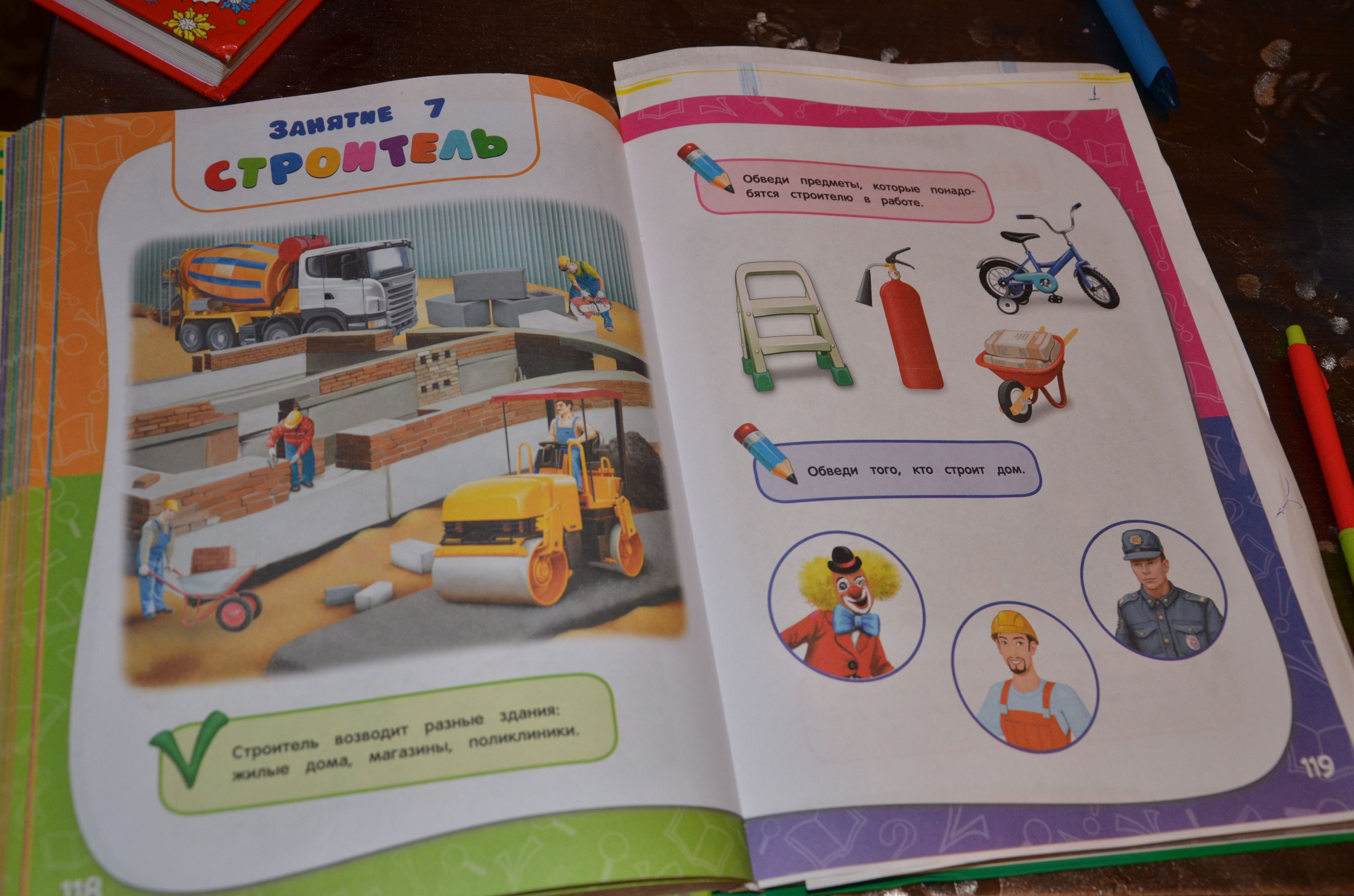 1. Прочитали стихи о разных профессиях. Книга понравилась, тем что в ней много знакомых профессий (врач, пожарный, учитель и т.д.) и также есть редкие (ветеринар, лесник, программист, столяр и др. ).