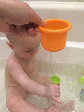 4.Играем с водой. Переливаем воду из емкости в емкость с помощью ложек, пипеток, шприца, через воронку, губкой.Обычно детки очень любят игры с водой!)