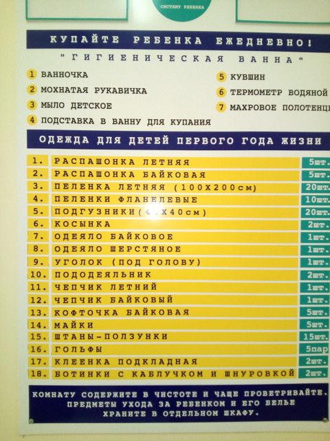 Пару постельных, пеленки… Шт 7 (если не пеленатт, а так… Подстелить), боди, шапочки, штанишки, кофточки — ну по 3 -4 возьмите, носочки, царапки. Размеры одежды можно не брать самый маленький… Они ну очень быстро вырастают… Можете не успеть оде ь;) возьмите 56-62… Дети тож разные рождаются. Бутылочки они не желательны, если гв планируете, водичкой допаивать с ложкчки, но мне не удобно было -1бутылочку купила. Подушки… Зачем они вообще? Ну если хотите купите 1 в кроватку, 1 одеялко потеплей в кроватку+ одно полегче(у нас в шезлонге днем лежит). Пару погремушек. Ну матрас нужен… (Хороший). Подгузники, мыло детское, крем под подгузник… полотенец детских пару, еще мне удобно малюсеньких полотенечков 20х20… Как салфетки), шт 5-они по дому у меня везде… Если срыгнет или слюньки вытереть). А вообще только когда ваш ребеночек появится, вы сможете понять, что именно Вам с ним нужно и что удобно…