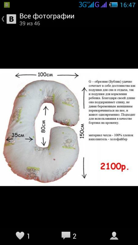 У меня такая подушка спать очень удобно… да и потом пригодится. В виде подковы… ну а удобней в виде буквы "G"… мне очень нравится
