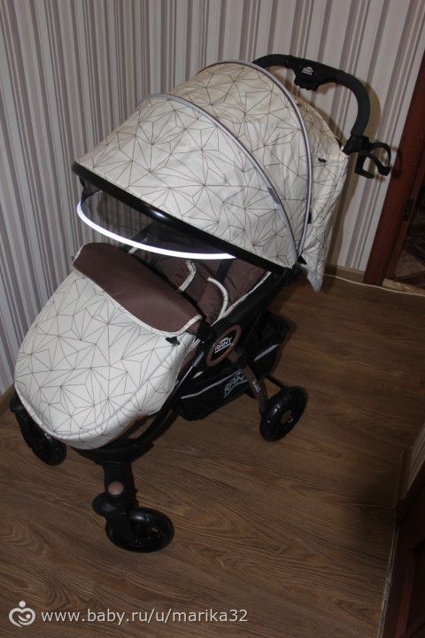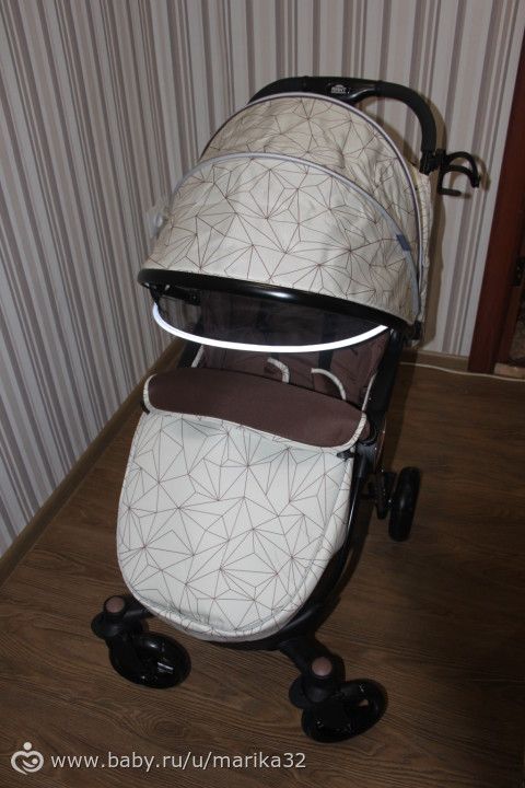 Рекомендую, кто в поисках недорогой прогулки. Отличная коляска, малышу комфортно (спальное место огромное), бампер снимается, капюшон офигенно большой, накидка на ножки плотная, ход коляски плавный, складывается и раскладывается одной рукой (ну иногда с помощью ноги))). В целом стильно смотрится. В минусы — отсутствие сумки для мамы (теперь буду искать где купить