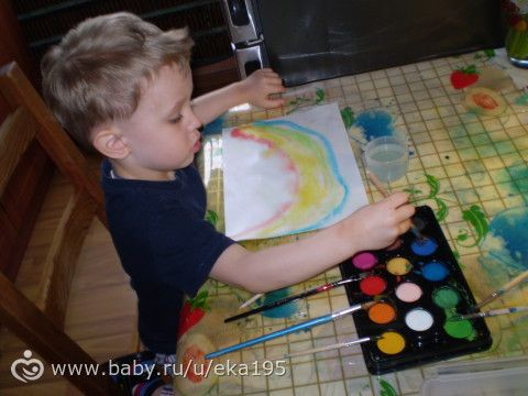 у нас весь день дождь, и нельзя на улицу, поэтому решили сделать радугу.