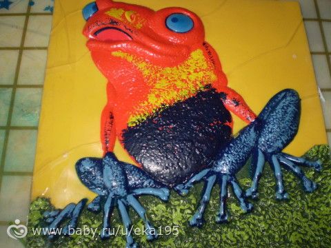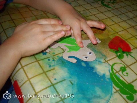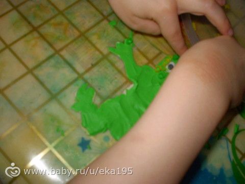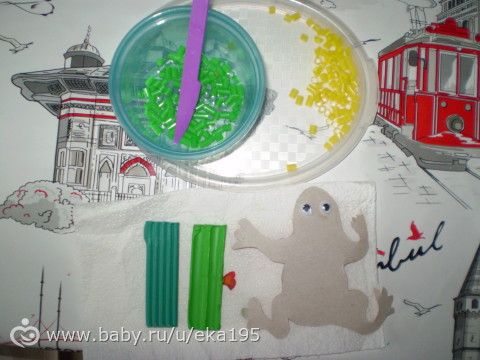 делали лягушку из пластилина и кожицу из разрезанных трубочек.