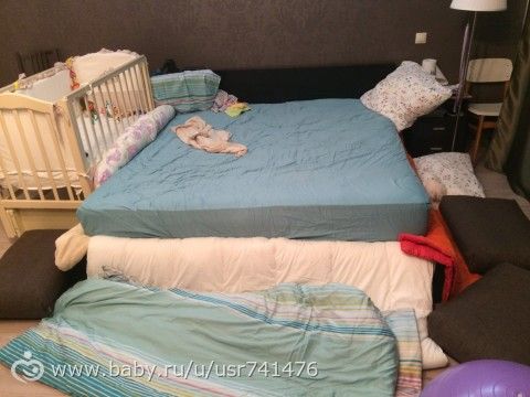У меня пол комнаты заложено подушками, одеялами. И ложусь так, чтобы малой был под стенкой, ну типа собой закрываю.