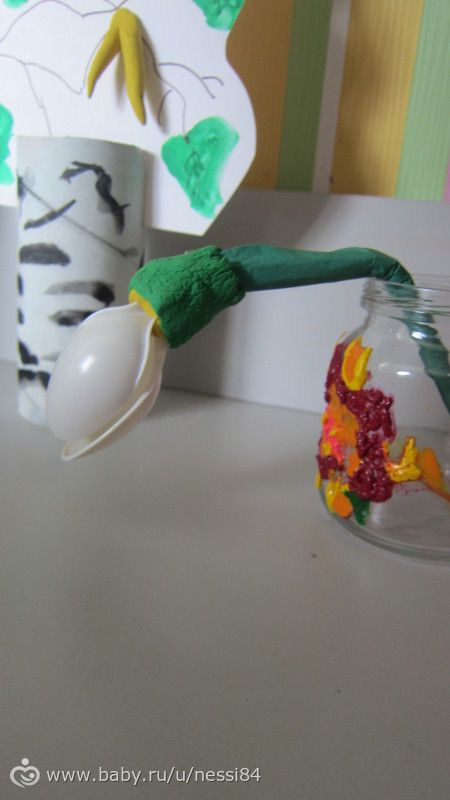Букет весенних цветов. У нас не совсем букет, а просто цветок подснежник (ложек не хватило). Полина обозвала его тюльпаном и доказать ей обратное невозможно.