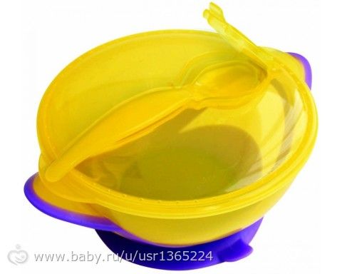 Ложка пласмасовая с силиконовым наконечником у нас с 3-х месчцев, мы ей воду пили. Чашечка небольшая глубокая без присоски, читала чтобы можно было в микроволновку ставить. Поильник тоже самый простой, рублей за 40 из ашана, брала попробывать будет пить из него или нет. Племяник поильники вообще не признает. Задумываюсь о покупке плоской тарелки, но тоже буду брать самую простую. У цветных с картинками эти картинки слазиют. Когда ребенок будет реально заинтересован из чего есть купим то что выбирет сама.