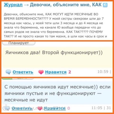 Кристина, Кристина, теперь можете и мне повторить про организм работающий в одном режиме и бла бла бла. По факту: у меня две беременности без патологий, каких либо рисков и угроз, абсолютно нормально закончившиеся родами, в срок, двое мальчишек без отклонений. В обе беременности абсолютно нормальные месячные до 3 месяца, о беременностяз узнавала только по токсикозу, при этом уточню что месячные у меня не идут по часам, более того в течении года съезжают с начала месяца на конец.