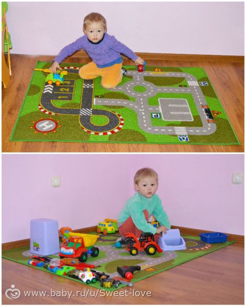 Он 2-сторонний — с одной стороны буквы и картинки, с другой — дорожки, лес, речка и т.д. (для игр, сын любил машинки катать). На природу его удобно брать, моется легко, под душем, быстро высыхает. Сейчас собираемся Икеевский покупать, тоже с дорожками.Юлька, Ответить: Юлька