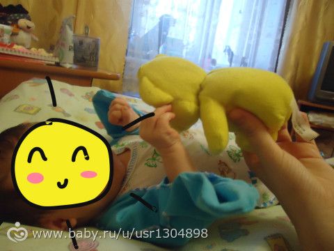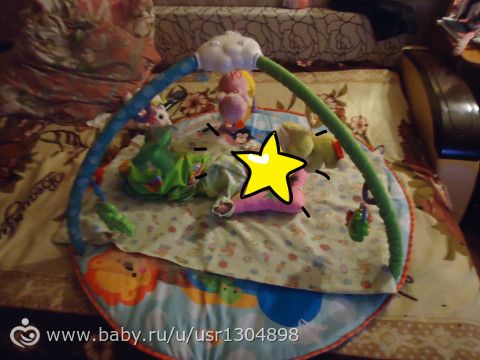 правда когда я его достала и приципила те игрушки она на них 0 внимания… я сняла те игрушки которые были в комплекте с ковриком и поменяла их на игрушки мягкие они яркие теперь она на них смотрит и даже ручкой уже пытается их взять ( задевает их ручкой и улыбается лижит)
