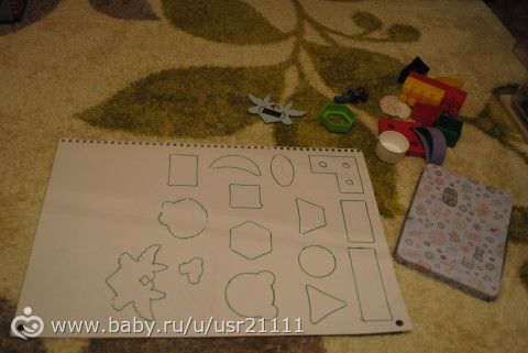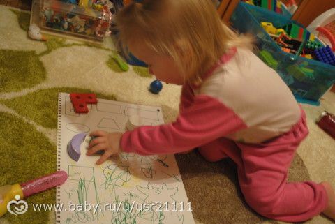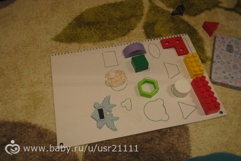 Было задание подобрать фигуры по их контурам) Честно, не думала, что Поле понравится) Но она было в восторге)