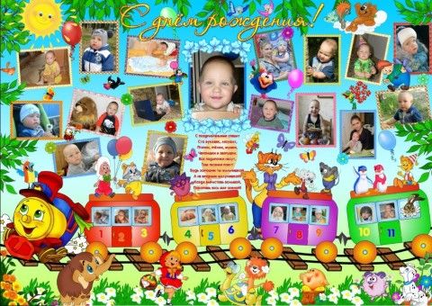 Я украшала к двум годам комнату шарами, гирляндами и на стены развесила картинки машинок детских. Плюс еще делала фотоколлаж