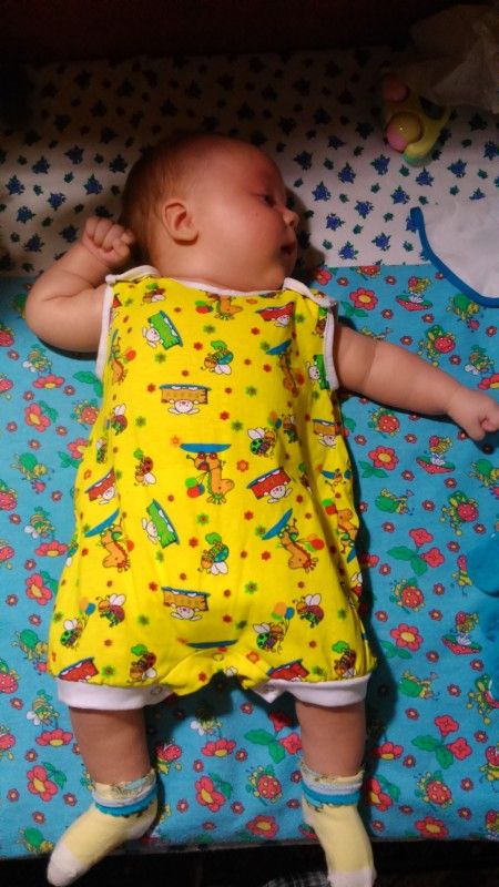 Нашла в магазине :-) называю купальным костюмом :-) сверху накрываю пеленкой до ручек. До этого спали в бодике.