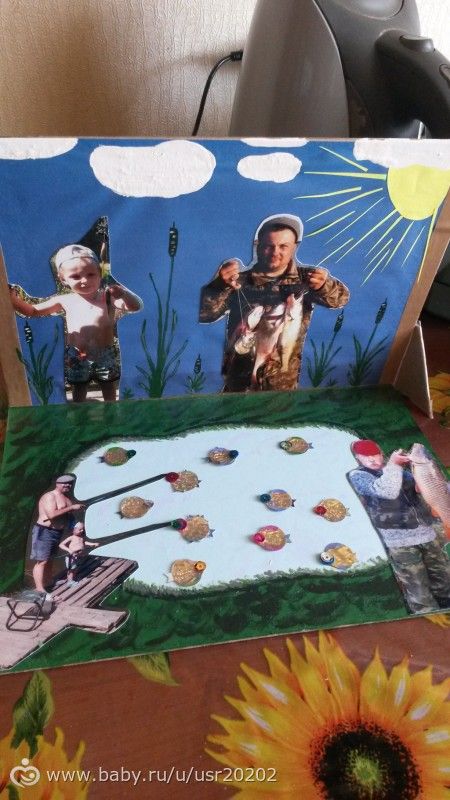 И мы же поделку сделали в сад с Ваней. Тема «хобби моей семьи». Из нашей поделки сразу ясно чем наши мужчины увлекаются)))