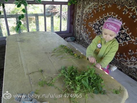 на одуванчиках уже появились парашутики, Полька быстро сообразила что с ними надо делать.
