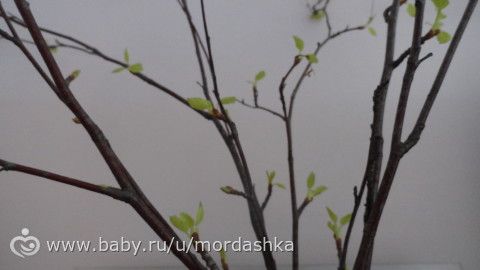 1.Поговорили про весну (правда с нашими сугробами какая-то неправильная весна получилась), сорвали веточки березы, только-только распускаться начали.