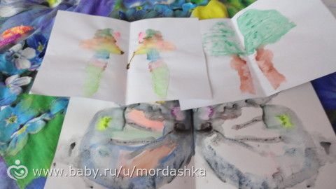 1.Очень интересно ребенку оказалась рисовать в технике «монотипия». Изрисовали примерно треть пачки бумаги и 5 больших листов для акварели ))) Для примера часть рисунков