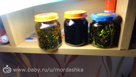 Космос в банке не получился – почему-то оказалось очень проблематичным найти блестки в нашей «дыре» ((( Поэтому Никушка сама себе нарезала мишуры и сделала вот такие баночки