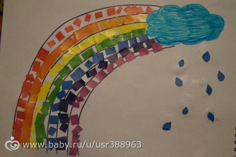 Мы делали радугу с помощью аппликации + работа с ножницами.