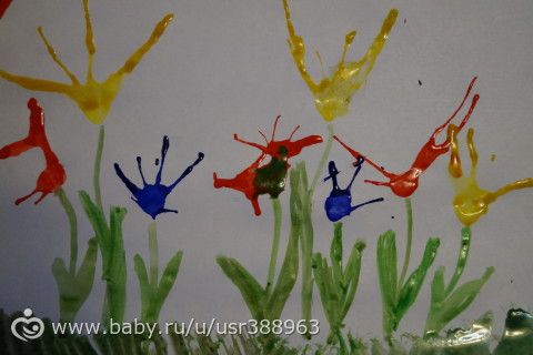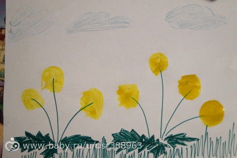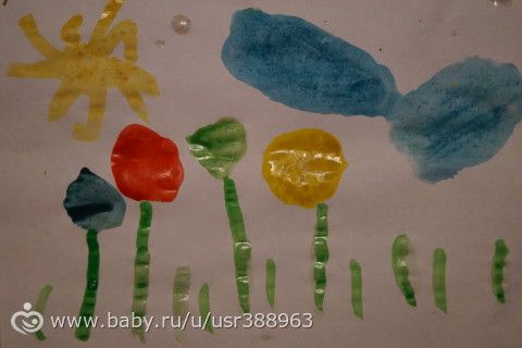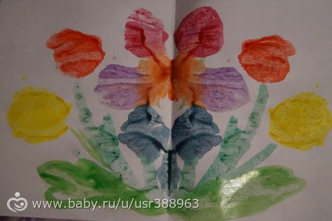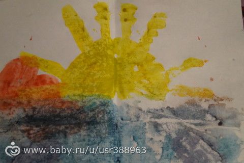 А еще весной солнышко нас радует, греет и мы его тоже не обошли стороной и нарисовали в технике монотипии.