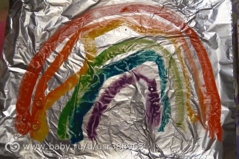 Потом мы рисовали радугу на фольге. Это кстати очень интересно!