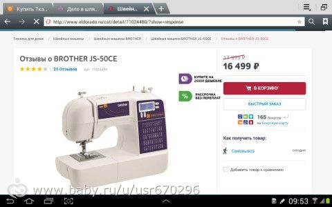 Но муженек мой решил сделать мне сюрприз и притащил на д.р. какую-то другую хрень(((Даже близко не то, что я хотела, вот вообще… и началось… Конечно же поехали менять, то чего хотела нет, выбрала из того, что было(Brother js 50ce), отзывы ок!