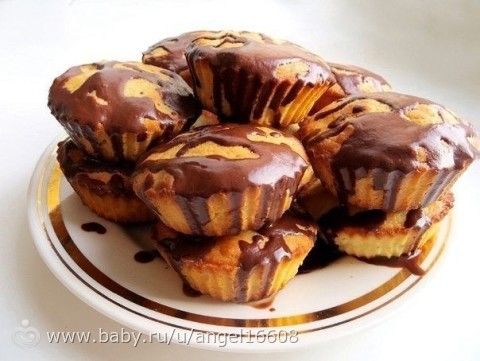 4. Выпекать в нагретой духовке до 180 гр., 25-30 минут.Готовность проверять деревянной шпажкой.Сверху залито шоколадом, можно обсыпать сахарной пудрой.