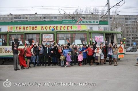 левый берег) встречайте 1 мая пасхальный трамвай)