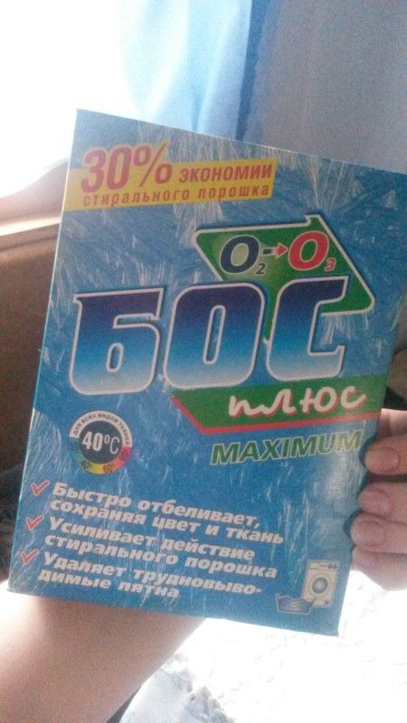 Засыпьте вещи боссом такой отбеливатель и залейте кипятком, пусть постоит часа 2-3 а потом в машинку