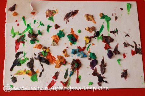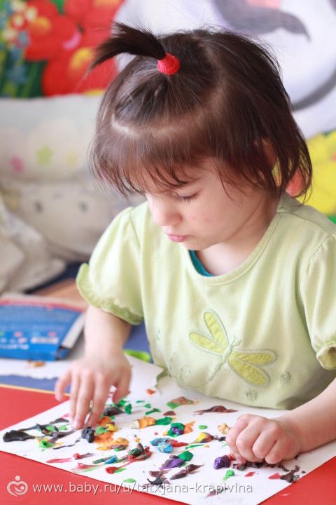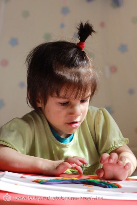радует то, что Вика почти перестала есть пластилин, уже смотрит на меня, прежде чем пытается запихнуть его в нос или в ухо, или в рот) Больше всего ей нравится размазывать пластилин по бумаге. И чтобы это делать, сидя у меня на коленях)