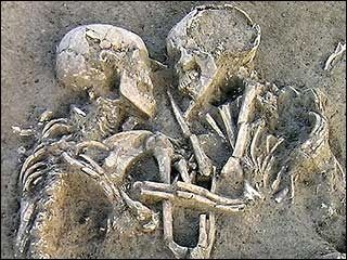 Мужской и женский скелет пролежали обнявшись тысячи лет...