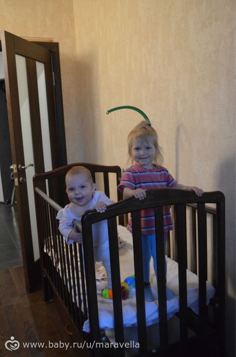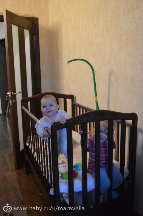 Из нового — сидит уверенно, 3 дня назад начала вставать в кроватке, теперь идея фикс — встает постоянно, падает, ударяется, орёт