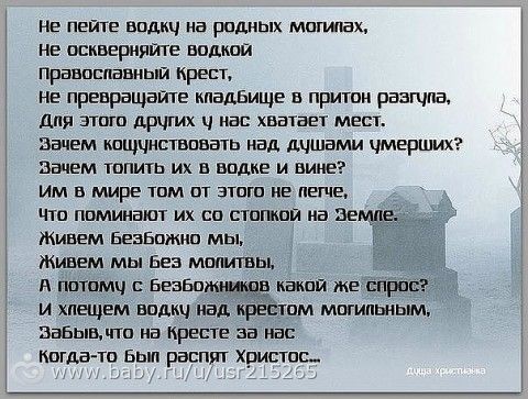мы ездим перед пасхой, убираем и красим всё! а на родительский день уже просто проведать и положить конфетки, яйца! никогда там не пили...