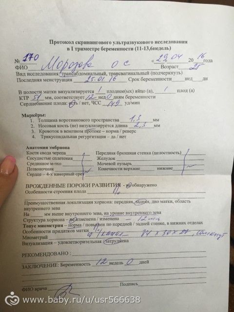 Девочки все прошла я его:))) ура нашей крохе 12 недель:))) я счастлива все хорошо и предположили дочку:))) ждём 2 скрининг что бы подтвердили:) и слала кровь :) 11 мая на приём:))) жду :)))