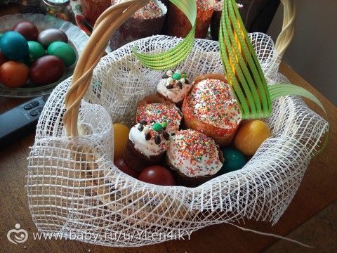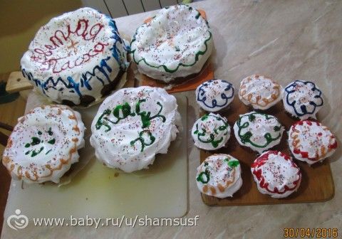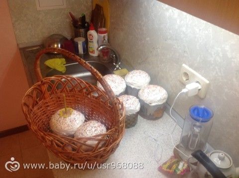 бабушкины… эх это самые вкусные куличи из детства!)я тоже разогналась))собственноручное производство, делала на две семьи, маленькие решила не печь потому как дети у нас маханькие и сладкое не даём, а доча всеравно успела глазурь пальчиком попробовать, на фото только половина))ещё пять за кадром «голые остывают»)