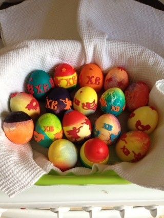 Пасха))сын обожает этот праздник за раскраску яиц))и бой яйцами))