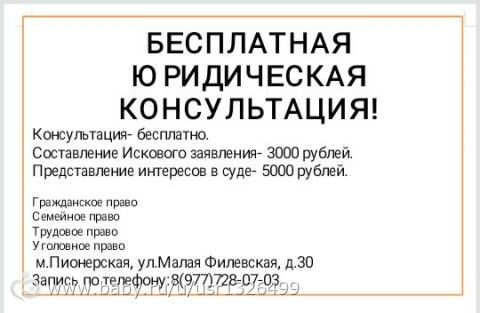 Всем кому необходима бесплатная юридическая консультация. На ваши вопросы ответит высококлассный и квалифицированный специалист. Консультация — БЕСПЛАТНО!!!