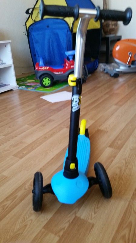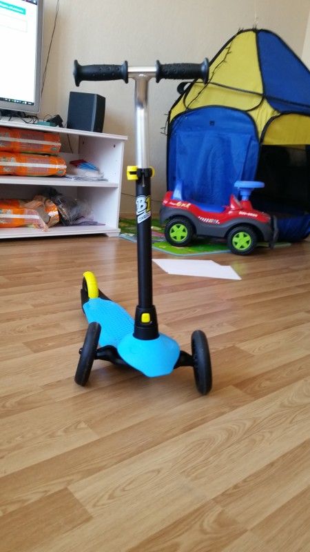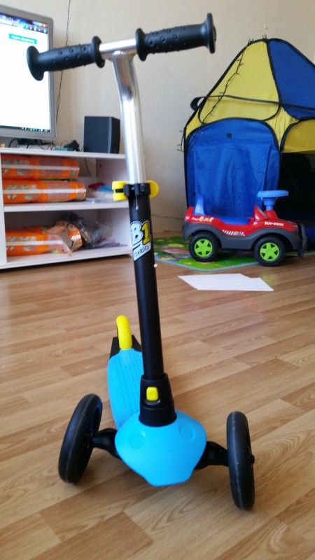 Девочки, у нас еще не куплен самокат, хотя я его планировала купить малышке на 2г, ну у нас все подарки с опозданием в этот раз, это не страшно конечно, ну уже пора бы и купить, ведь на улице тепло и самое время кататься, вот никак не могу выбрать, тот что мне понравился, ну нигде еще не появился так чтобы доставка не дорогая была, а издалека заказывать и платить за доставку огромные деньги тоже мало приятного, ну вот теперь думаю и гадаю, читаю отзывы и перевариваю, есть два варианта, не могу определиться какой из них лучше, ну во-первых самокат буду брать с растущей ручкой однозначно, во-вторых вроде как поняла что лучше брать самокат который управляется наклоном нежели поворотом руля, ну и то что он складывается или нет это не особо важно для меня, хотя хотелось бы, самое главное вот в чем, самокат до 20 кг или самокат до 40-50 кг, какой же выбрать, первый легче и как раз подходит сейчас наше крошке, но он на пару сезонов всего, то есть покупать дорогой нет смысла, потом его никому не продам за нормальную цену, нашла вот какой, судя по фото он еще и складной, ну как пишут что минус это ручки, будут пачкаться, а по мне так плюс такие ручки, не будут скользить мне кажется, тормозов нет увы, цена плюс/минус 2000 в разных магазинах без доставки.