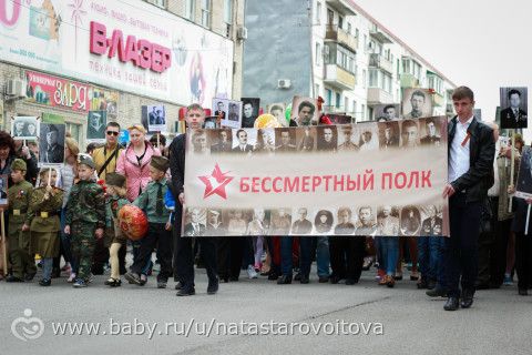 Я когда вижу фотки с бессмертного полка я начинаю рыдать, не говоря уже отом если это видео или вживую… До рождения дочки я не так на это все реагировала, как-то спокойно относилась… А теперь одни слезы… Спасибо нашим делам за мирное небо!