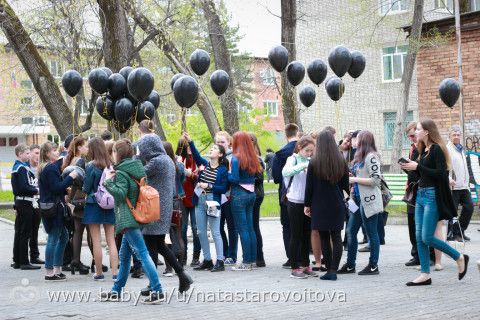 71 шар, как 71 год Мира! К шарикам привязаны открытки со словами благодарности тем кого уже нет, но благодаря кому мы живем без войны!
