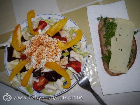 ужин… Курица и салат витаминный (красная капуста, яблоко, морковка)