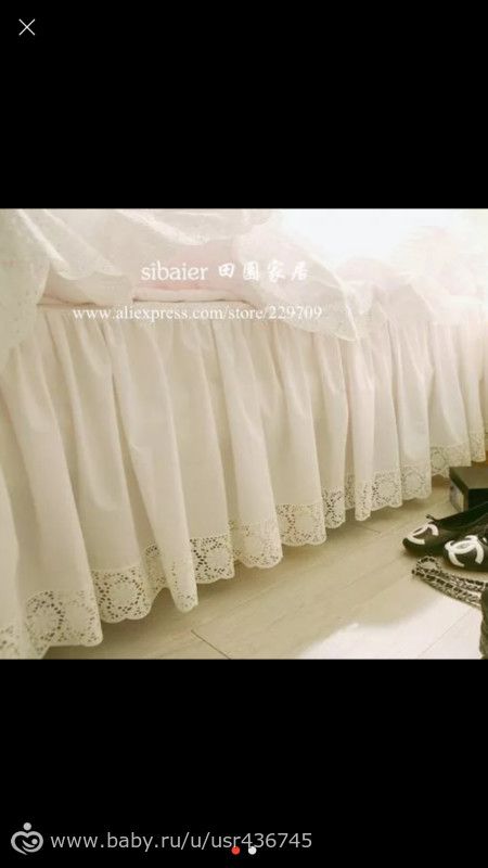 НА АЛИ --ЮБКА? в россии такие вещи называли подзор, подзорник. украшались кружевами, вышивкой, складками… конечно не в круговую были, а в виде полосы, потому что русские кровати со спинками были. у нас до сих пор где-то бабушкины подзоры лежат