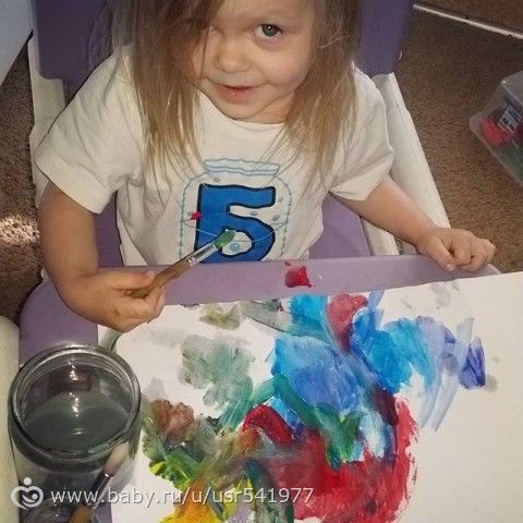 Ну настоящий художник — лохматая, вечером все еще в своей ночной футболке любит ее, не дала переодеться, потом футболка в стирку и рисует что-то непонятное) Разве что не голодная, говорят художник должен быть голодным)