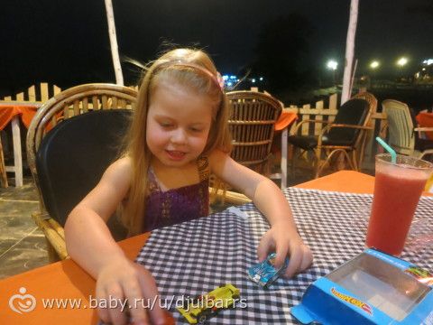 Под конец отпуска Алиса перестала слушать мои рекомендации по меню и с умным видом заявляла — «а сегодня я закажу… креветки! И сок! Красненький!»))))