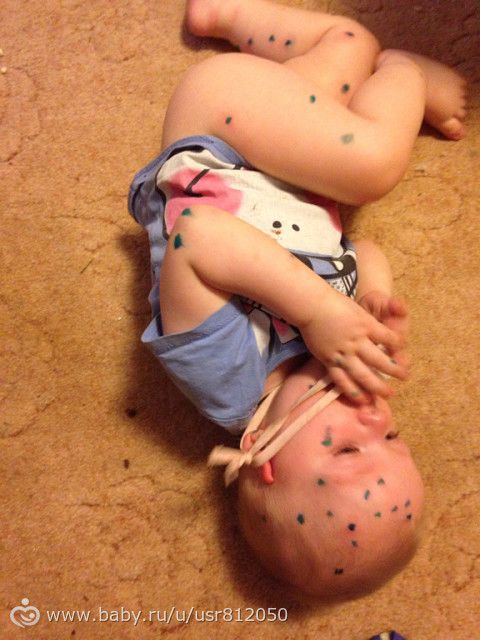 Ура наконец дождалась :-) в пятницу вечером у малого вскочили два прища, подумала на аллергию, дала лекарство, но легче не стало. В субботу еще вскочили несколько шт, каждый день высыпало побольше :-) и вот тадам она родная, ветрянка! Наконец то я дождалась :-) я очень хотела, чтоб он заразился сейчас, конечно в отличии от брата, малого высыпало много :-) ну и вот наши фотки :-) мой зеленый человечек :-)