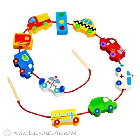 4. Развитие моторики. Делаем бусы или играем любой другой шнуровкой.