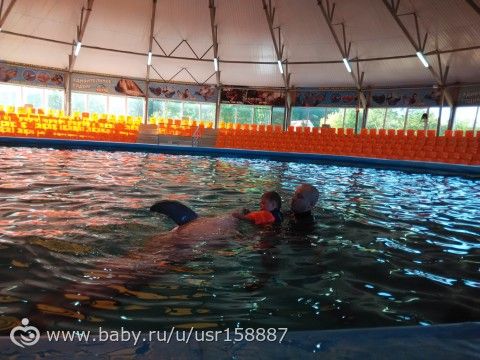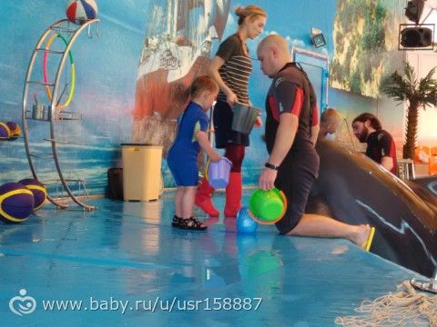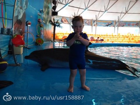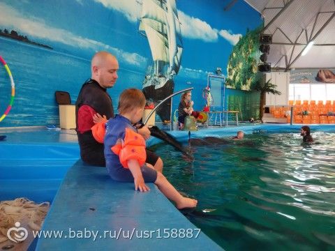 5 день иду на занятие вместе с мамой, я доволен)))Согласился лечь на воду и послушать ушками в воде песни дельфинов. Проплыл к маме пару метров сам))КАк она рада!!! Давно не видел, чтоб она так улыбалась)))